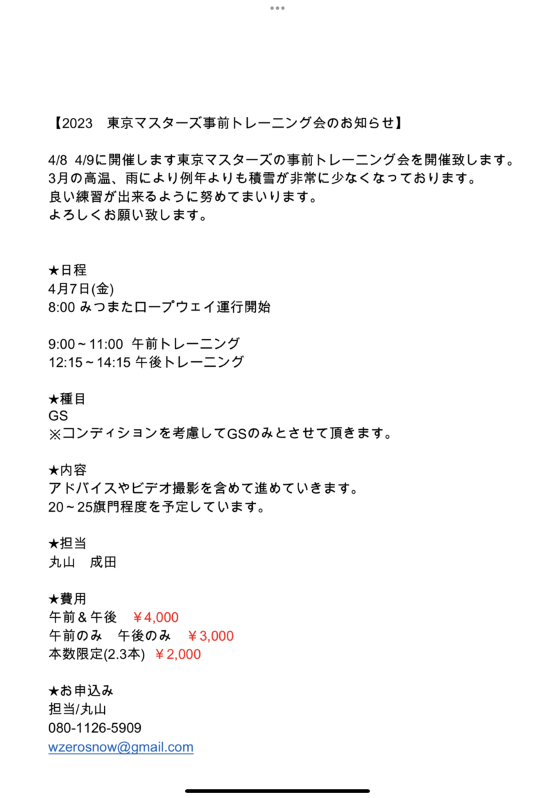 4月7日(金)に丸山コーチ主催の事前トレーニングが開催されます。ご参加される方は丸山コーチまでご連絡ください。