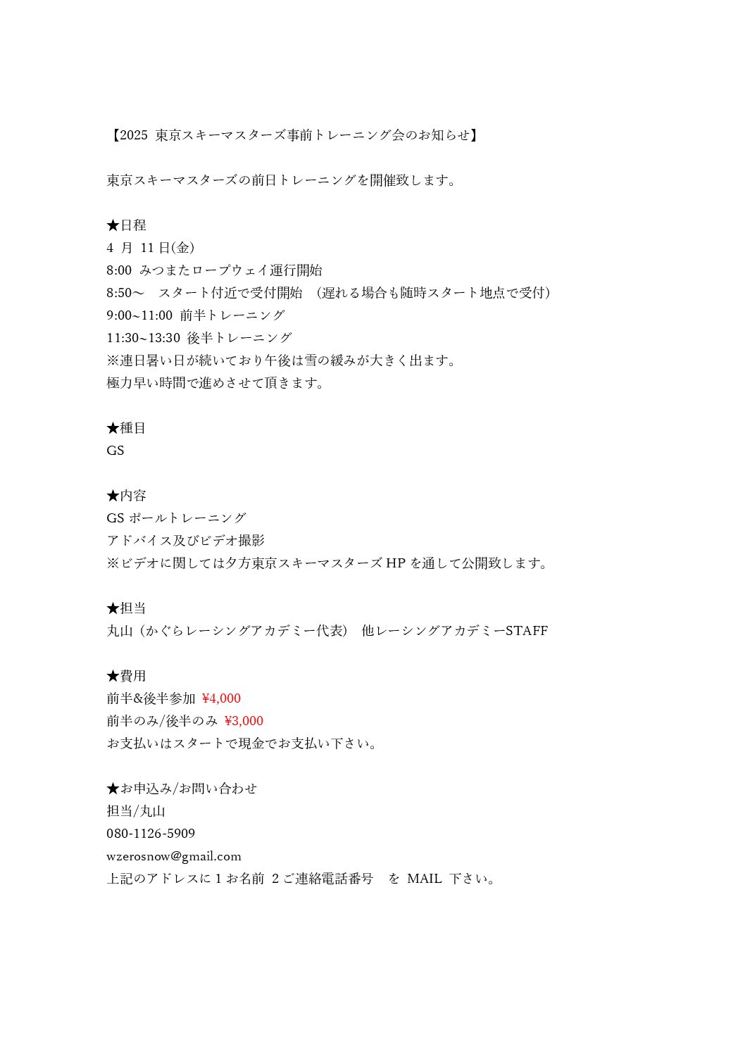 お知らせ第51回 東京スキーマスターズ競技会の開催が決定いたしました。